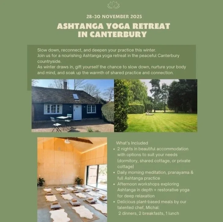 Slow down, reconnect and deepen your practice in this winter Ashtanga Yoga retreat. Join us for a nourishing weekend in the peaceful Canterbury countryside, filled with meditation, Pranayama, Ashtanga Yoga practice, restorative yoga and nourishing plant-base delicious food.